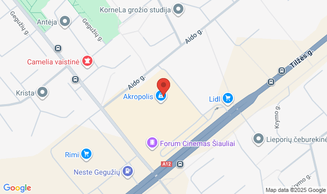 Adresas: Aido g. 8, Šiauliai (PC „AKROPOLIS“) , Šiauliai